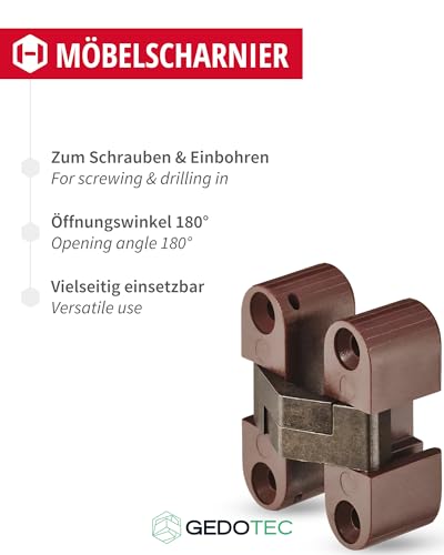 Gedotec H1964 - Cerniera per porte e mobili, 11 x 33 mm, in ottone marrone, 180 °