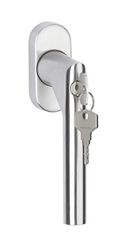 Maniglia per finestra stabile e di alta qualità, bloccabile, con 2 chiavi a cilindro - Materiale: acciaio inox massiccio - Superficie: Niro argento opaco spazzolato
