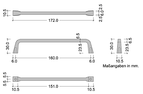 Maniglia ad arco per porte - Lunghezza: 172 mm - Profondità: 30 mm - Larghezza: 10 mm - Distanza tra i fori: 160 mm - Materiale massiccio - Maniglia senza angoli e bordi taglienti