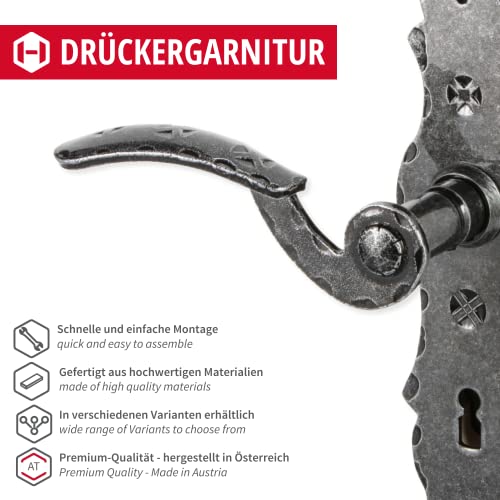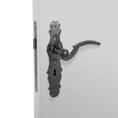 Gedotec Set di Maniglie a Leva | BERN | Cilindro PZ 88 mm | 1 Set per porta con materiale di fissaggio | Piastra Lunga in Ferro Battuto Nero | Maniglia per porta antica set per porte interne