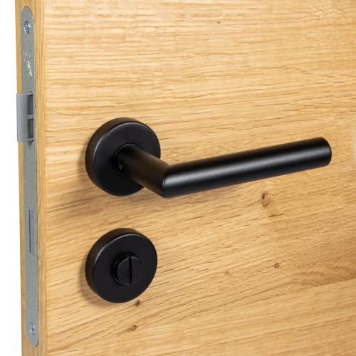 ✅ GEDOTEC Moderner Design Set di leve per porte BAD Ferramenta per porte in acciaio inox verniciato a polvere nera opaca su rosone rotondo per porte in legno e porte interne con chiavistello per WC e toilette