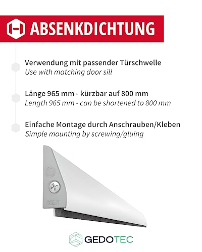 ✅ Montaggio semplicissimo. La guarnizione della porta nella parte inferiore può essere incollata o avvitata sulla porta. Se necessario, accorciare il paraspifferi della porta alla misura desiderata. Perfetto insieme alla soglia del pavimento CCE di Gedotec.