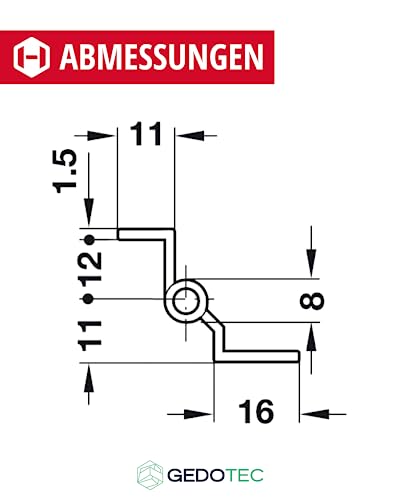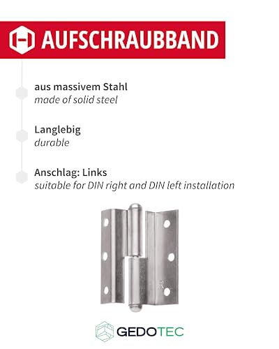 Gedotec 2 pezzi Cerniera per porta della stanza a gomito per porte, DIN sinistra | H1919 | Scanalatura D 7,5 mm, Lunghezza 50 mm, in acciaio nichelato opaco, nastro angolare da avvitare