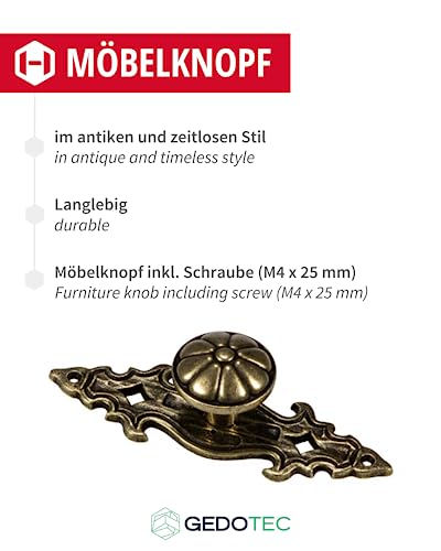 Contenuto della confezione: 5 maniglie per armadio in ottone anticato con viti M4 x 25 mm - Qualità premium di marca di Gedotec