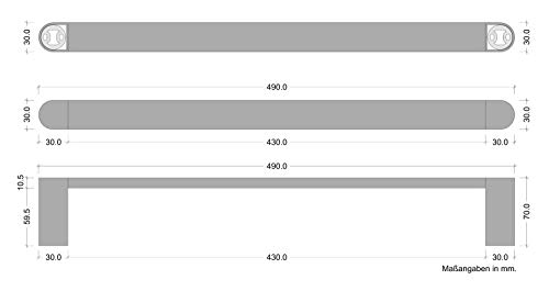 Staffa per montaggio a parete per porta asciugamano - Lunghezza totale: 490 mm - Larghezza: 30 mm - Profondità: 70 mm