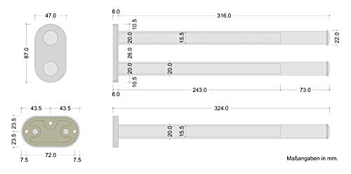 Gedotec Porta asciugamani a barra estraibile design estraibile per bagno a 2 bracci - TOWEL | Porta asciugamani a barra per montaggio parete Porta asciugamani a parete, cromo lucido 1 pezzo