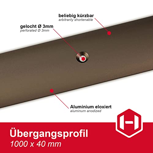 GedoTec Profilo transizione concavo perforato Alluminio anodizzato Ferroviario transizione Battiscopa Larghezza 30 - 40 - 50 mm 3 Colori 100 cm o 200 cm fatto germania - Alluminio bronzo anodizzato, 40 x 1000 mm