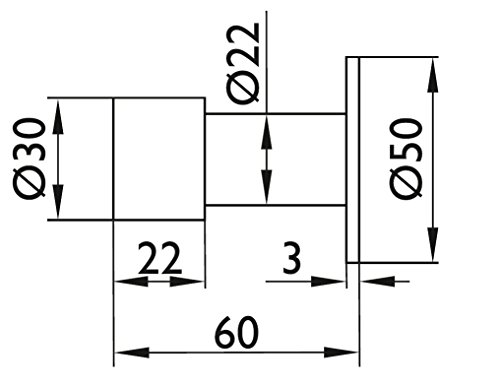 Profondità: 60 mm - Rosetta Ø 50 mm - Gomma: 22 mm - Materiale: acciaio inox V2A inossidabile