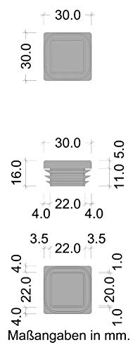 Profilo del cappuccio: 30 x 30 mm - applicazione ideale anche per piedini per mobili - trampolino - sedie da giardino, coperture per tubi - o come tappi per posta e molto altro.