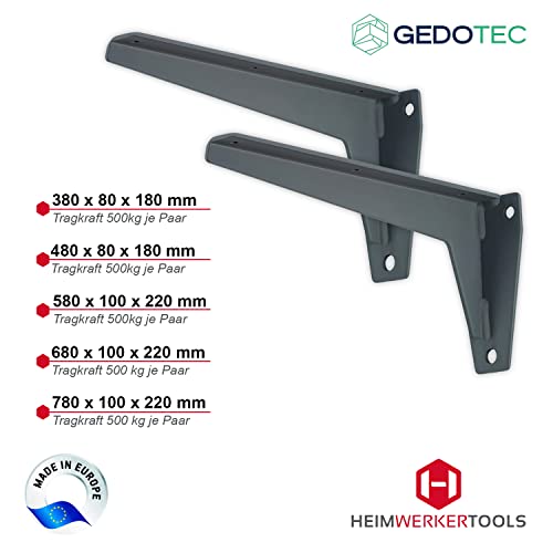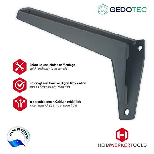 1 pezzo - Gedotec - Console ad angolo a parete in ferro grigio - Supporto per mensole in metallo - MIRA STRONG - estremamente stabile per carichi pesanti.