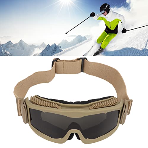 Gedourain Occhiali di Sicurezza Occhiali Militari, Occhiali da Caccia antideflagranti Protezione per Gli Occhi con Lenti intercambiabili per la Guida in Moto(Cachi)