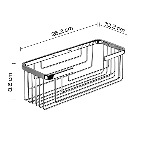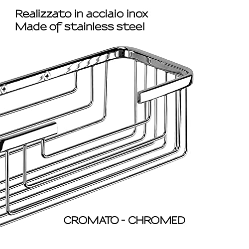 Gedy 000024191300100 Portaoggetti Doccia Rettangolare in Filo Cromato, Misure e Peso: 8,6X25,2X10,2 CM & 0,49 kg, Porta Oggetti per Bagno Realizzato in Acciaio Inox, Design R&S, 2 Anni di Garanzia