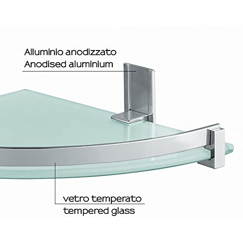 Gedy CD803800A00 Cloud Doccia Satinato angolare, Misure: 26X26X5,8 CM, Portaoggetti Bagno in Alluminio e Vetro temperato, Fissabile con Colla, Design R&S, 2 Anni di Garanzia