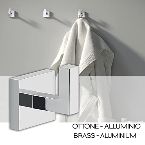GEDY G-Elba Appendi accappatoio bagno Cromato, Appendiabiti da muro dimensione 5,4X4,4X5 CM peso 0,102 KG, Gancio appendiabiti in ottone, alluminio e vetro, Anni di garanzia 2, Design R&S Gedy