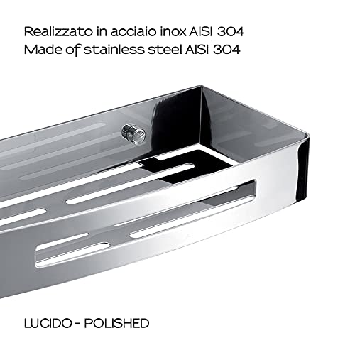 Gedy G-Hanoi, Porta Oggetti Doccia Rettangolare, Organizzatore Bagno in Acciaio Inox 304 con Finitura cromata, Design R&S, Misure 4,5x30x12,8 cm e 0,612 kg, 2 Anni di Garanzia, Unica