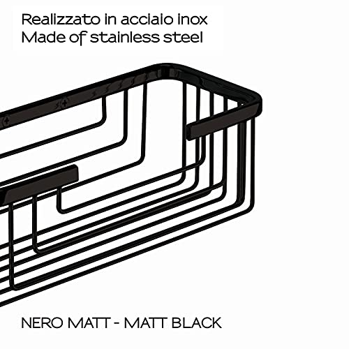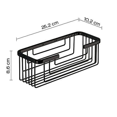 GEDY Portaoggetti doccia rettangolare in filo nero, Misure e peso: 8,6X25,2X10,2 CM & 0,482 KG, Porta oggetti per bagno realizzato in acciaio inox, Design R&S Gedy, 2 anni di garanzia