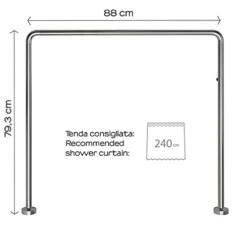 Misure - Le dimensioni del bastone tenda doccia angolare sono 2 X 77,3 X 72 CM e pesa 0,4 KG. Le lunghezze dei tubi sono rifilabili. Consigliato con tenda larga dai 180cm ai 240cm.