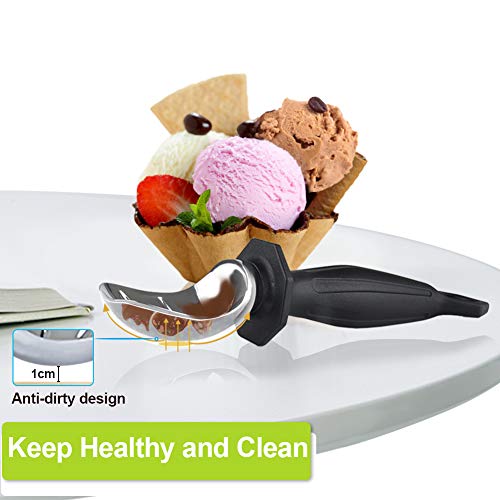 【Materiale Aggiornato】 : ★ Realizzato in materiale di acciaio inossidabile e PP ergonomico del manico, la paletta non si arrugginisce né si corrode, la forma unica può aiutarti ad affrontare facilmente i dessert congelati duri come la roccia, per realizzare bellissime palline di gelato arrotondate