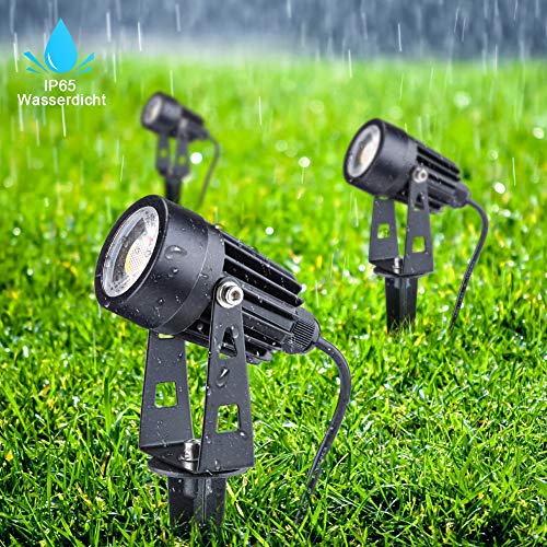 GEEDIAR - Lampada da giardino, 6 pezzi, luce bianca calda, COB LED, con picchetto, IP65, impermeabile