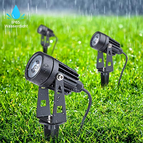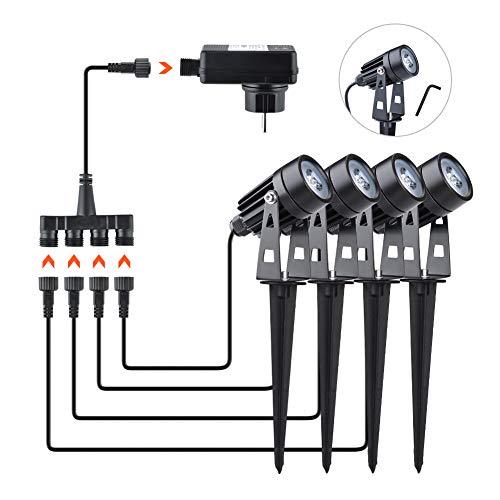 GEEDIAR - Lampada da giardino, 4 pezzi, luce bianca calda, COB LED, con picchetto, IP65, impermeabile, con spina per esterni, giardino, prato