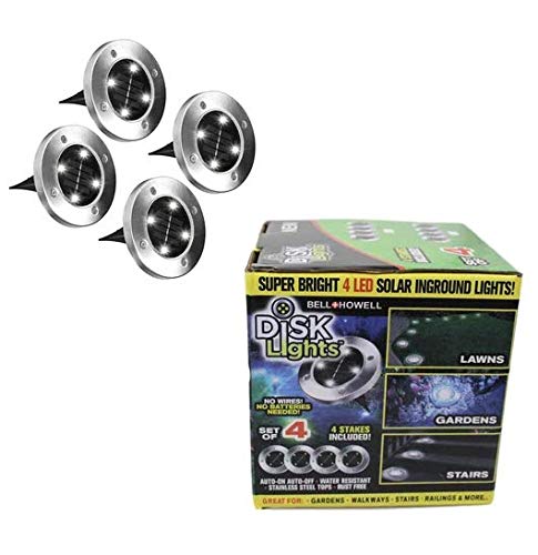 GEEDIAR - Luci solari da giardino a energia solare, IP65, impermeabili, 4 pezzi, 4 LED da 100 lm, in acciaio inox, lampada solare per scale, paesaggio, strade, vialetti (luce bianca calda)