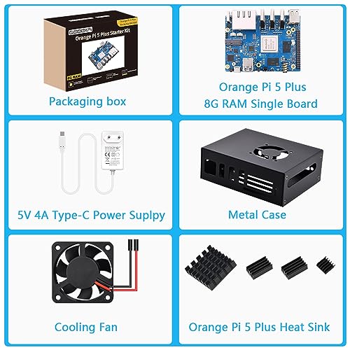 GeeekPi Orange Pi 5 Plus 8GB LPDDR4/4x Rockchip RK3588 8-Core 64 bit Single Board Computer with eMMC Socket,OPi 5 Plus Metal Case Official Orange Pi 5 V 4A Alimentatore di rete 40 mm Ventola per