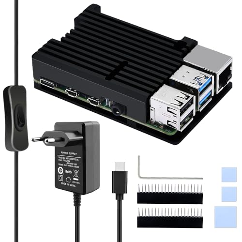 GeeekPi Raspberry Pi 4 Custodia con alimentatore USB-C 5V 3A, Raspberry Pi Case CNC Armor con raffreddamento passivo/dissipatore di calore per Raspberry Pi 4B