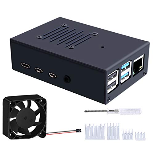 GeeekPi Raspberry Pi 4 Custodia con Ventola 40x40x10mm, Raspberry Pi 4b Custodia in metallo e Raspberry Pi Dissipatori Raspberry Pi Ventola per Raspberry Pi 4 modello B(Nero)