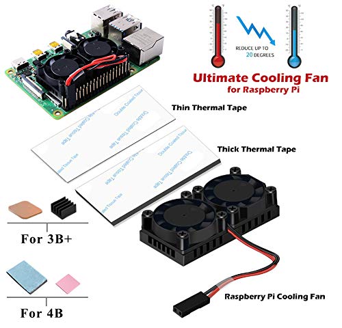 GeeekPi Raspberry Pi 4 Fan, Raspberry Pi Dual Fan con dissipatore di Calore Raspberry Pi 4 con 2 Kit di Raffreddamento a Nastro Termico per Raspberry Pi 4 Modello B & Raspberry Pi 3B +