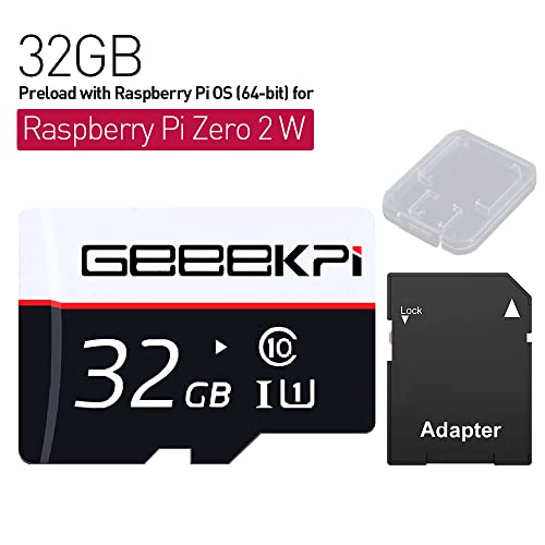 GeeekPi Raspberry Pi Zero 2 W Starter Kit with RPi Zero 2 W Aluminum Case,32GB SD Card Preloaded OS, QC3.0 Power Supply,20 Pin Header,Micro USB to OTG Adapter,HDMI Cable,Heatsink,ON/OFF Switch Cable
