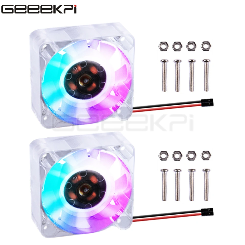 GeeekPi RaspberryPi LED Cooler 1 Set 2 Pack 40*40*10 Transparent/Black Cooling Fan 4010 Blue Light RGB for Raspberry Pi 4B/3B+/3