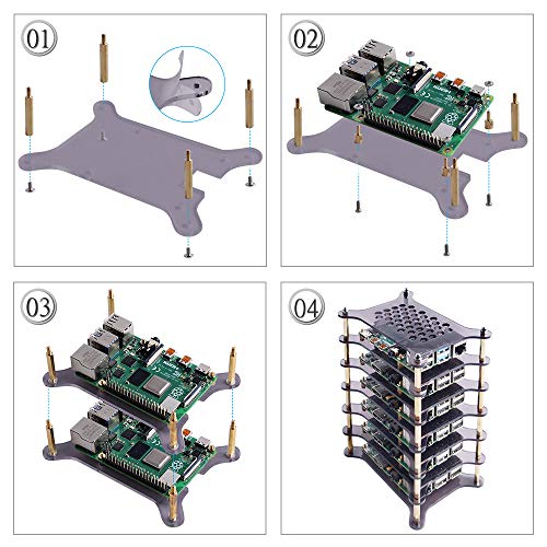 Il pacchetto include: 1 x 1 confezione di 6 strati acrilico quadro per Raspberry Pi, 6 x dissipatore di calore in alluminio (per RPi 4B), 6 x dissipatore di calore in alluminio e rame (per RPi 3B +), 1 x cacciavite