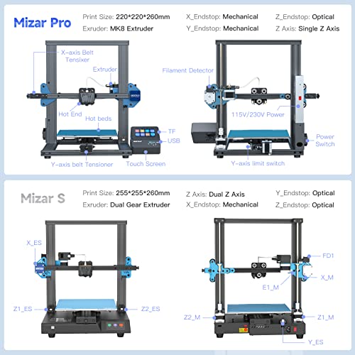 Geeetech Mizar Pro DIY Auto-Leveling Stampante 3D, Touch Screen a Colori da 3,5 Pollici con Driver TMC2208 Scheda Ultra Silenziosa, 220X220X260mm