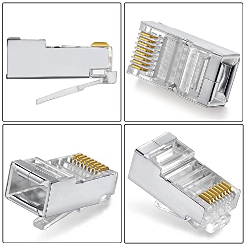 GeekerChip 20 Pezzi Plug Connettori di Rete Cat6,Placcato in Oro 24K per CAT 6,CAT 5e e CAT 5 Schermato RJ45 8P8C Connettore per STP Ethernet Network Cavo Spina Modulare a Crimpare, Router