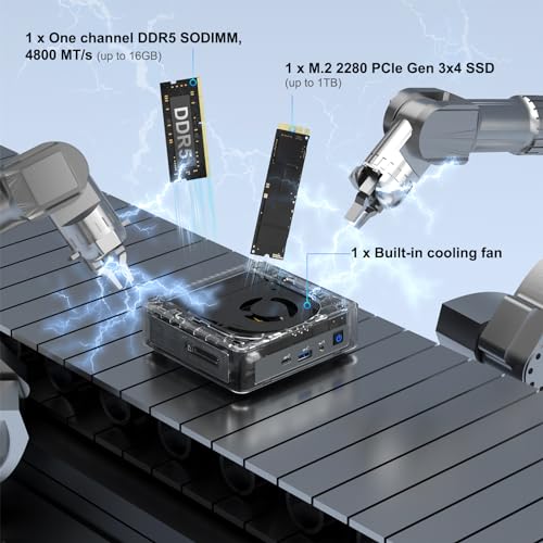 Capacità scalabile - Questo mini PC è dotato di SODIMM DDR4 a doppio canale da 8 GB, espandibili fino a 32 GB, che garantiscono una maggiore velocità di trasferimento. Nel frattempo, l'unità SSD M.2 da 256 GB supporta l'espansione fino a 1 TB per soddisfare tutte le esigenze di archiviazione di massa.