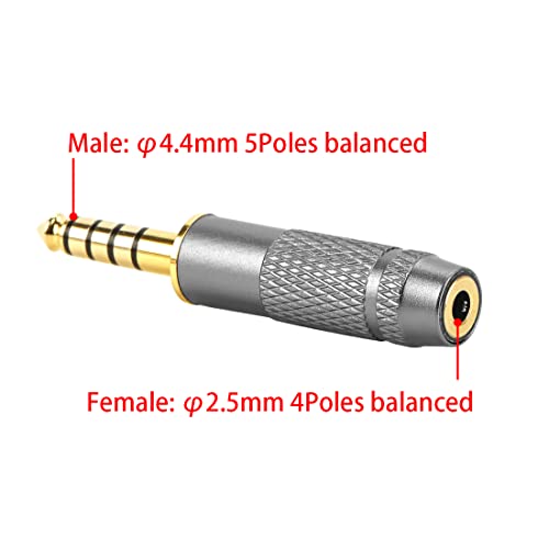 GEEKRIA Adattatore da maschio bilanciato da 4,4 mm a femmina bilanciata da 2,5 mm per cuffie, in lega di alluminio, adattatore placcato oro
