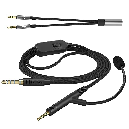 Geekria QuickFit Boom Mic - Cavo per cuffie per giochi e riunioni, compatibile con Sennheiser HD-599 579 569 559 569 559 559 558, cavo di ricambio da 2,5 mm con microfono e controllo volume/muto