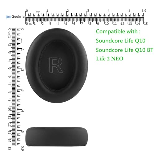 Geekria QuickFit Protein - Cuscinetti auricolari di ricambio per cuffie Anker Soundcore Life Q10, Q10 BT, parti di riparazione (nero)