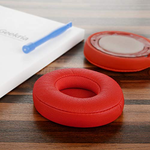 Geekria QuickFit Protein Leather Ear Pads for Solo3, Solo 3.0, Solo 2 Wireless On-Ear Headphones Replacement Earpads/Ear Cushion/Ear Cups, Headset Ear Cover Repair Parts (Red)