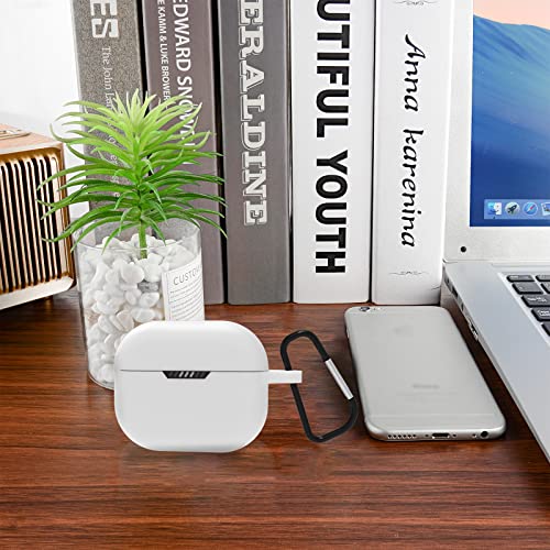 Geekria Silicone Case Cover Compatible with JBL Tune 130NC TWS True Wireless Earbuds, Earphones Skin Cover, Protective Carrying Case with Keychain Hook, Charging Port Accessible (Bianco)
