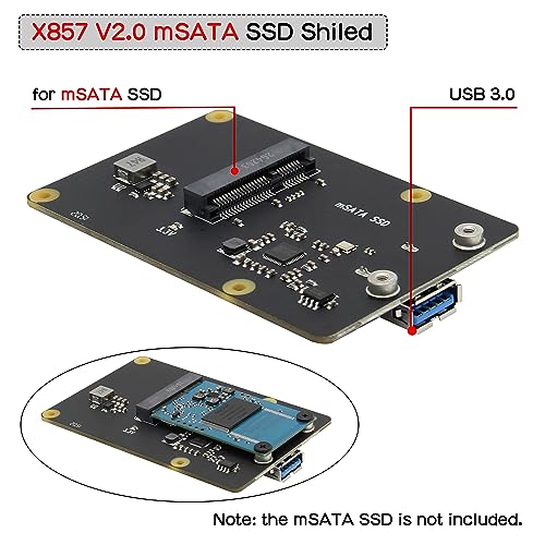 【Raspberry Pi 4 mSATA Shield】X857 V2.0 mSATA Adapter for Raspberry Pi 4 Model B(1GB/2GB/4GB/8GB), UASP supported, NOT support TRIM