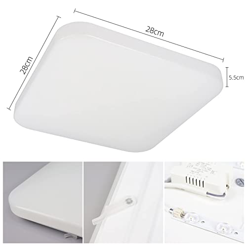 GeeliHome plafoniera a uno punto luce con retroilluminazione, plafoniera moderna in acciaio e plastica bianca, plafoniera a led bianco neutro,quadrato,28W,diametro 27cm