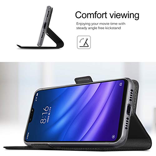 Geemai Cover per Xiaomi Mi 8 Lite, Custodia Protettiva Xiaomi Mi 8 Lite, Custodia a Portafoglio in Pelle PU Premium Protezione di Lunga Durata, Adatto per Xiaomi Mi 8 Lite Smartphone.(Nero)