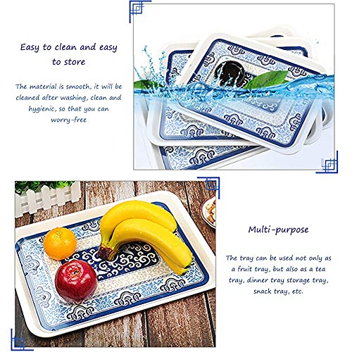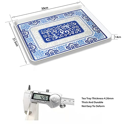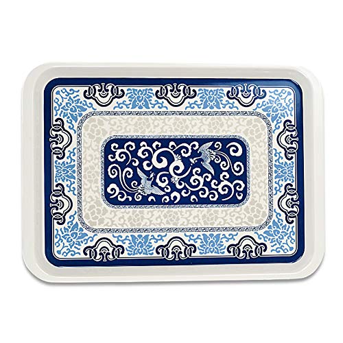 GEER Vassoi di servizio in melamina, struttura rettangolare in porcellana blu e bianca Vassoio da portata robusto e antiscivolo 30x21,5x1,6 cm (12 pollici), piccolo