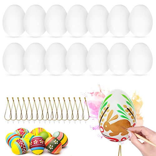 GEERDAN Uova di Pasqua Decorazioni, 24 Pezzi Bianco Uova Pasquali con La Corda, Uova di Plastica per Decorazione, Pittura di Artigianato Fai da Te di Pasqua per La Decorazione e Regalo