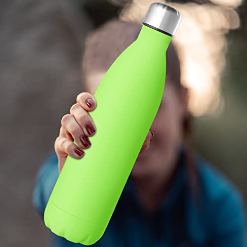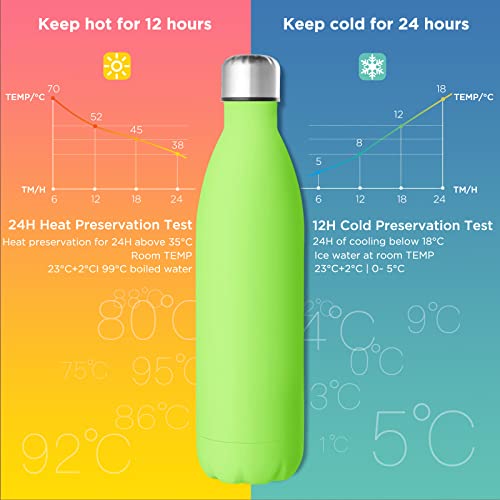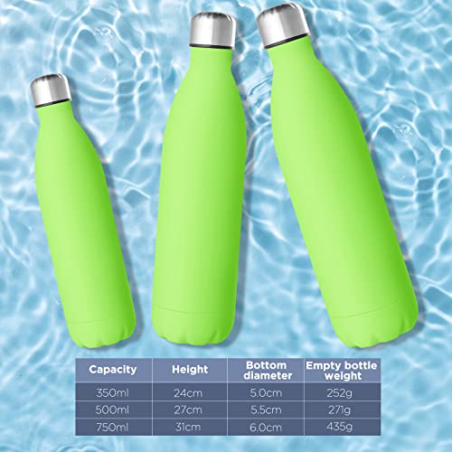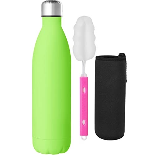 GeeRic Bottiglia Termica 750ML Opaco Borraccia in Acciaio Inox+Spazzola+Borsa Portatile Bottiglia d'Acqua Sportiva Tenere 12H Caldo/24 Freddo Borraccia Termica per Campeggio,Scuola,Sport Verde Chiaro