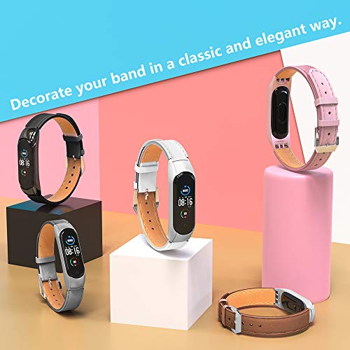 GeeRic Cinturino Compatibile per Mi Band 6/5, Pelle Braccialetto Compatibile per Mi Band 6/5, Sostituzione Cinturini in Ecopelle Cinturino Compatibile con Xiaomi Mi Band 5/Mi Band 6 Rosa