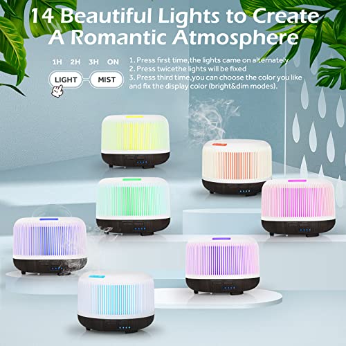 GeeRic Diffusore di Oli Essenziali 400ML, Ultrasuoni Umidificatore Purificatore d'Aria Scolpito Diffusore di Aromi Nebulizzatore per Oli Profumati 7 Color LED Silenzioso per Yoga Casa Marrone Scuro