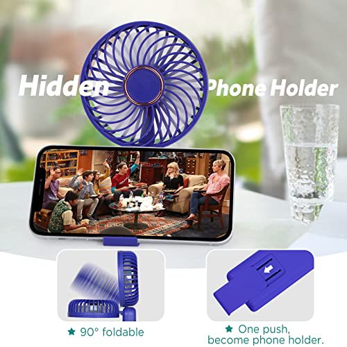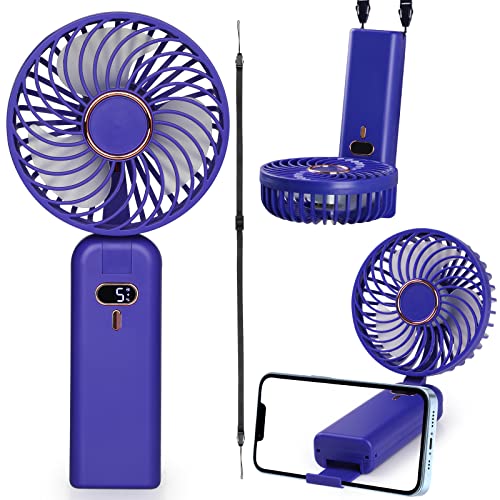 GeeRic Mini Ventilatore, Ventilatore Portatile+Cordino/Display/Supporto TEL USB Ventilatore Pieghevole Silenzio Tasca 4000 mAh/5 velocità Ventilatori da Scrivania per Viaggi/Trekking/Ufficio Violetta