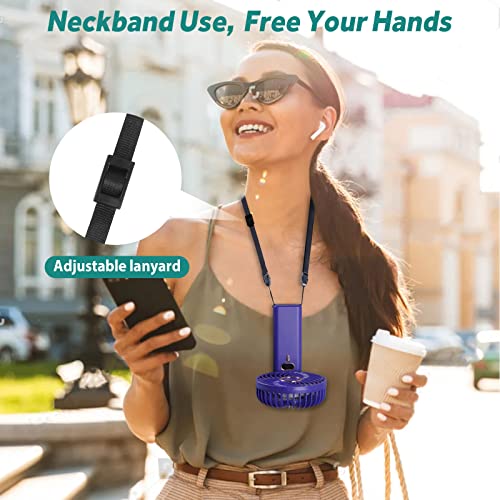 4. Ventilatore da collo/Scrivania :Questo ventilatore può piegarsi fino a 0-90°.Puoi usare questo ventilatore:① Tienilo sulla tua mano,② Mettilo sul tavolo,③ Appendilo al collo con il cordino. Oppure puoi metterlo nello zaino o nella borsa quando esci, particolarmente adatto per i viaggi estivi o gli sport all'aria aperta.
